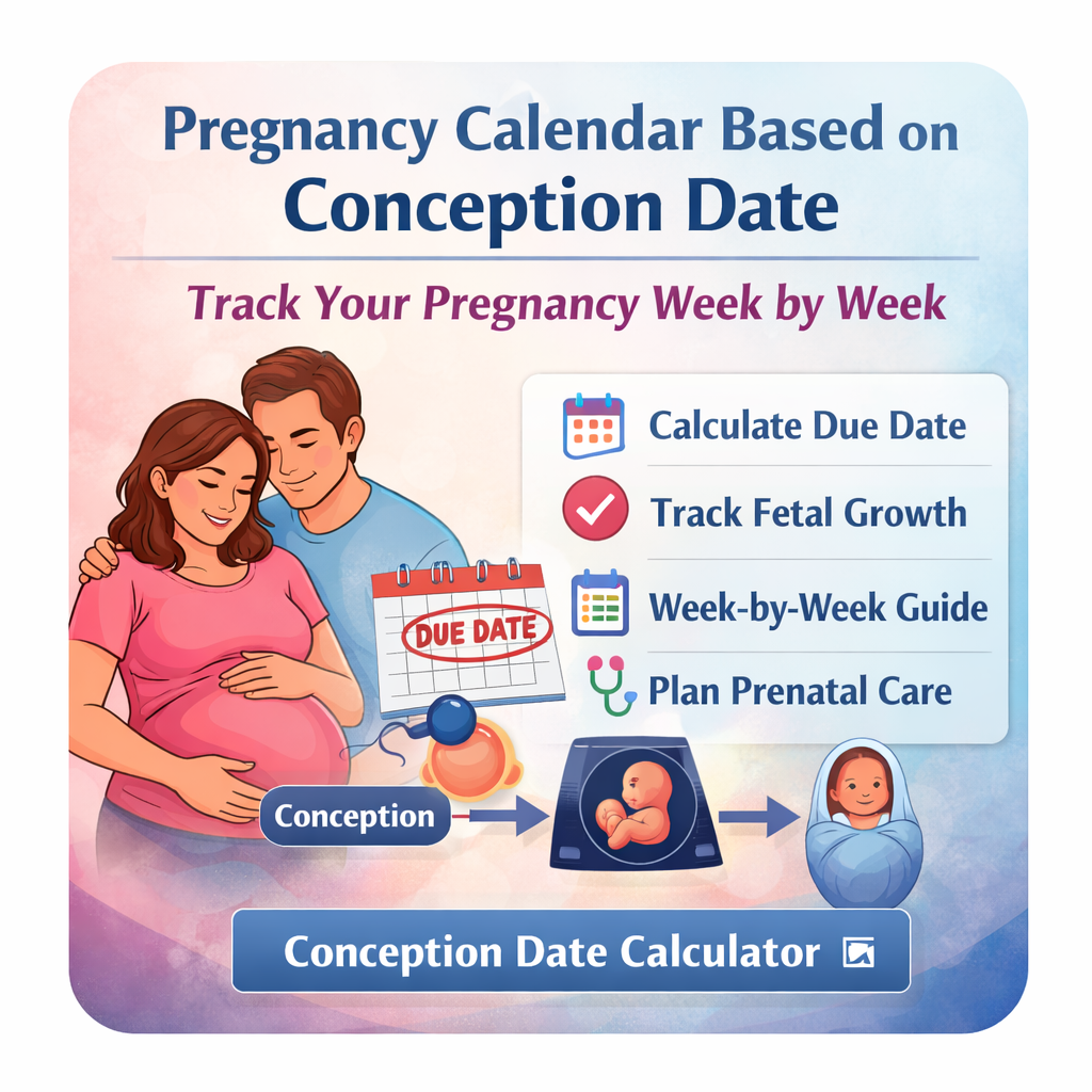 A pregnancy calendar based on conception date calculates pregnancy progress from the day of fertilization. It reflects the baby’s true biological age and estimates a due date 38 weeks (266 days) from conception.